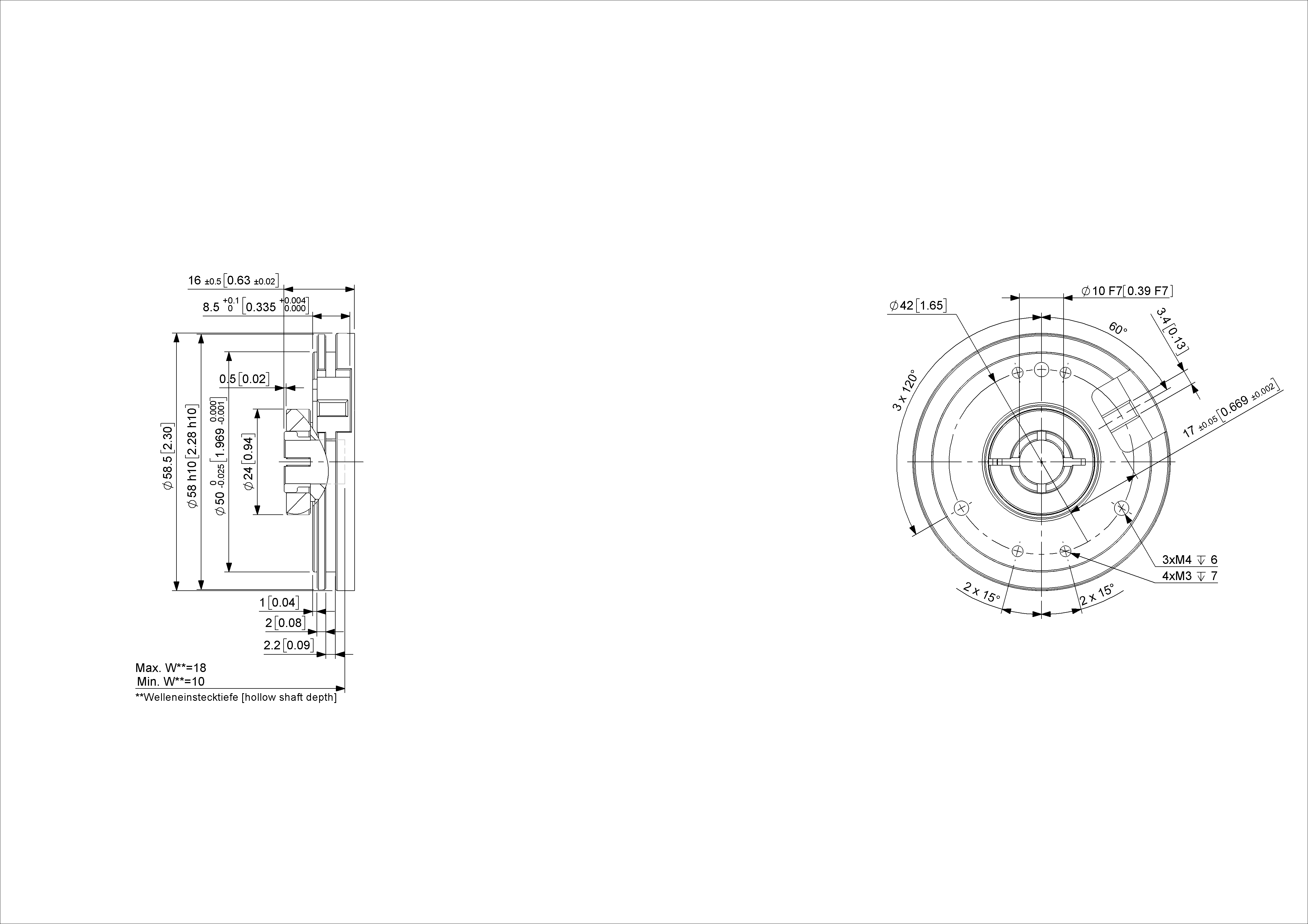 | Type de bride | Arbre creux non traversant, ø 58 mm |